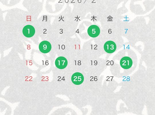 3月の店休日カレンダー更新。
